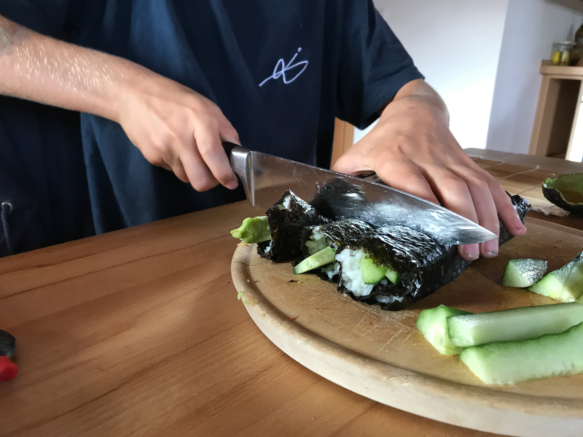Nachmittags machen wir Sushi. Das hatten die Jungs bei ihrer Schwester gesehen, die sich eine Brotdose für ihren Ausflug bestückt hat. Also gab es eine große Portion Sushi satt.