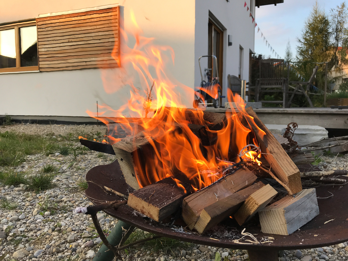 Am Abend sind die Jungs auf dem Spielplatz. Ich habe Lust auf ein Vollmondfeuer und bestücke die Feuerschale. Ich mache es mir am Feuer gemütlich und lese bis die Jungs nach Hause kommen.