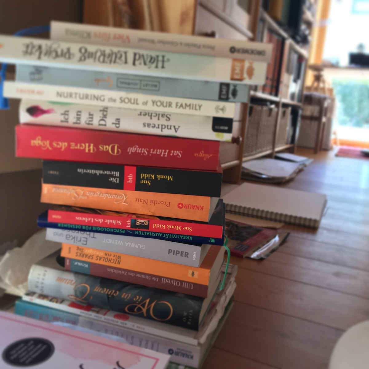 Am Samstag verabschiedet sich der Mann von uns und fährt nach dem Frühstück nach Altenburg, wo er für eine Eröffnung eines großen Yogastudios Gong spielt. Ich verbringe einen gemütlichen Tag mit den Jungs. Wir helfen einer Freundin beim Umzug und tragen ein paar Sachen. Danach gehen wir Eis essen. Wieder zu Hause verbringen die Kinder Zeit im Garten und in der Siedlung. Ich sortiere Bücher aus, die ich erstmal auf Instagram anbiete (ein paar wenige sind noch zu haben), die Reste dann zu Momox schicke.