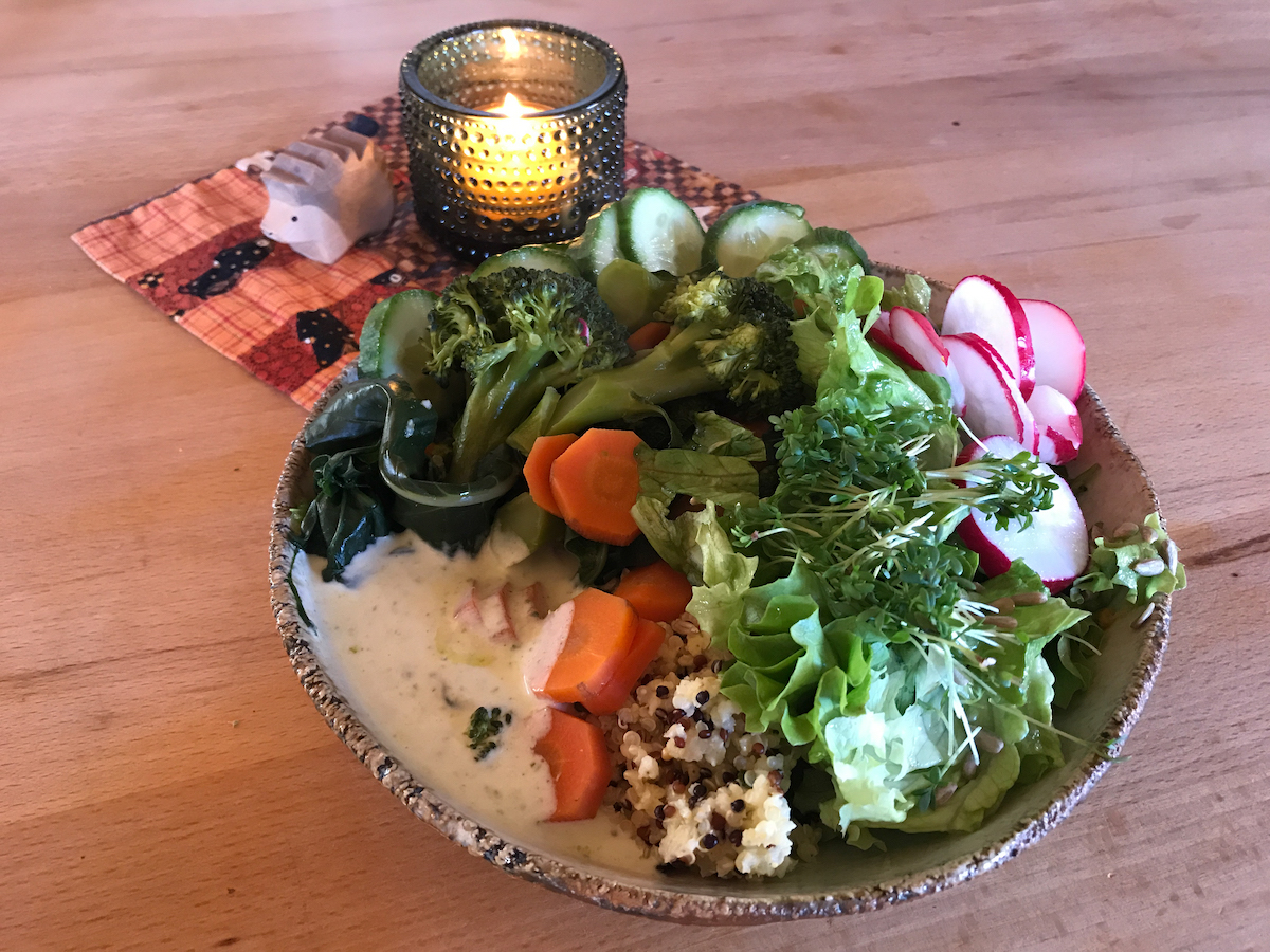 - Quinoa/Hirse Bowl mit Gemüse und Salat