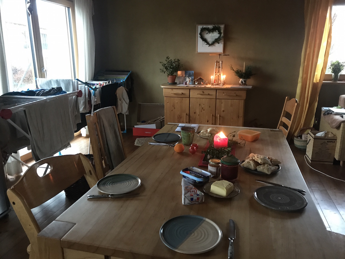 Auch der Sonntag ist verregnet. Wir schlafen lange aus und frühstücken dann in Etappen. Der Sterngucker zündet die Pyramidenkerzen an und ist, immer und immer wieder, fasziniert davon.