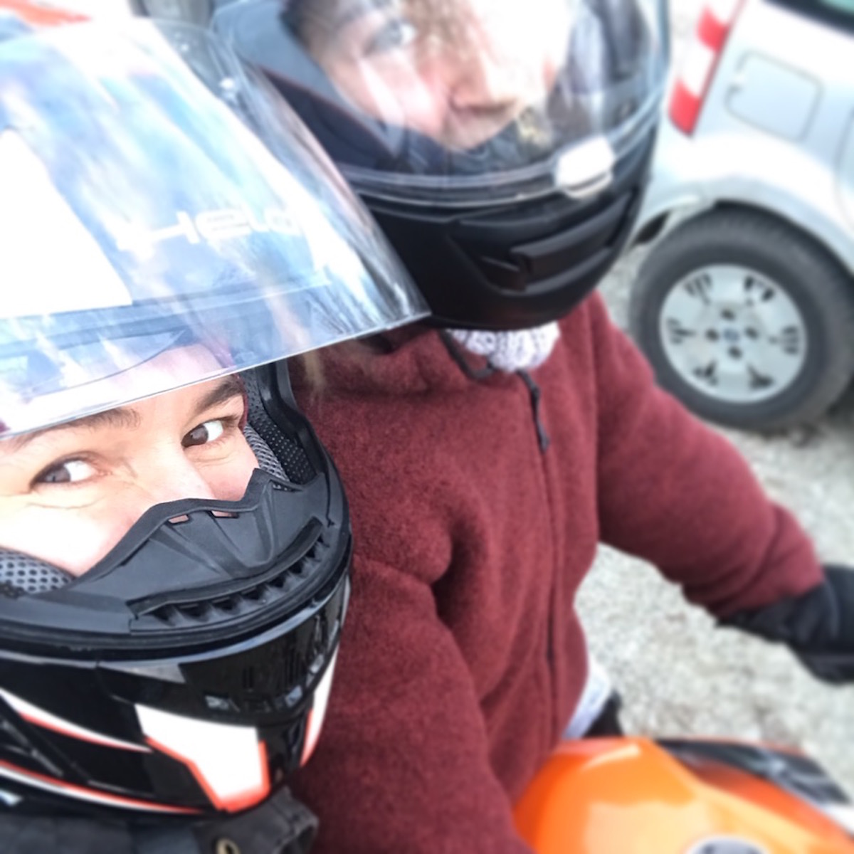 Am Samstag war ich mit der Tochter kurz auf dem Weihnachtsmarkt im Nachbarort. Dazu hat sie mich – Premiere – auf dem Motorrad mitgenommen. Das war schon ziemlich cool und ein komisches gefühl. Muttertaxi andersrum.