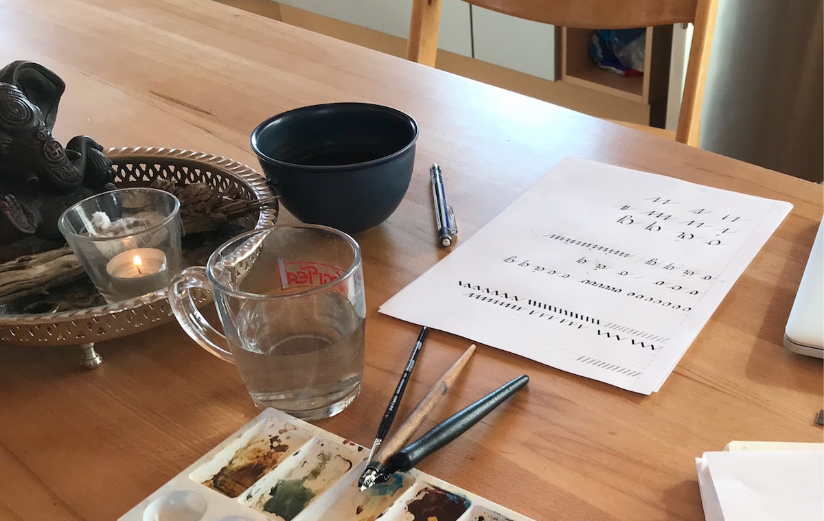 Zurück daheim verbrachte ich den Vormittag mit meinen diversen Weiterbildungen: dem Trajans-Kurs und dem Manfesting Superheros Aufgaben. ich hatte das gefühl, richtig gut voran zu kommen. Mit Kopfhörern sass ich am Tisch und zeichnete Buchstaben während der Mann mit den Jungs las und spielte.