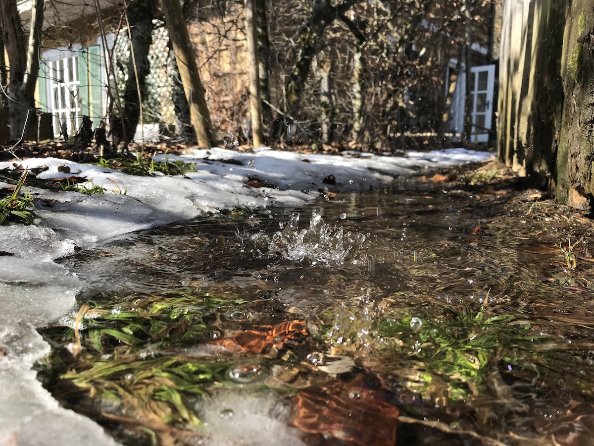 Draussen war herrlichstes Sonnenwetter. Wir beschlossen, gemeinsam beim Steinsee einzukehren. Dort hatten wir Tee, Kaffee und Kuchen (bzw ich Bruschetta, weil ich ja kein Ei esse und in den meisten Kuchen Ei drin ist). Währenddessen arbeitete ich an dem Projekt, was ich mir für die Café-Arbeitszeit auf meinen Rechner gepackt hatte. Gemeinsam mit dem Mann kam ich ein gutes Stück weiter. Der Sterngucker spielte am Handy oder ging immer wieder raus in die tolle Wintersonne. Wir schlossen den Nachmittag mit einem kleinen Spaziergang am Steinsee. Der See war noch zugefroren, das Eis aber schon am Tauen. Ich mag es sehr, wie sich Wasser auf so vielseitige Arten immer wieder neu zeigt. Der Sonnentag tat wunderbar gut für die Seele.