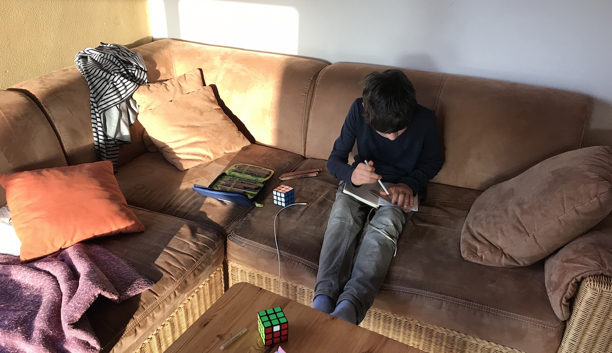 Am Sonntag wurde ich schon früh durch meinen Husten wach. Ich schlich mich in die Küche, sass ein wenig mit meinem Morgenjournal und machte mir Frühstück. Später kam der Mann nach seiner morgendlichen Meditation dazu, dann auch die Jungs. Ich kümmerte mich um die Kursvorbereitung des Schreibschriftkurses, der Sterngucker machte sich gebratene Banane zum Frühstück, der Wolf zeichnete eine Anleitung zur Lösung des Zauberwürfels für sich und seinen Freund.