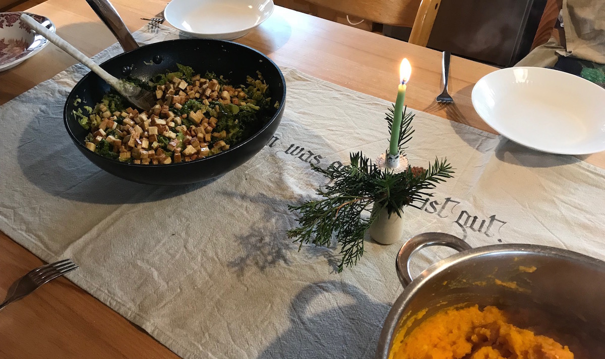 Zum Mittag kochten wir Wirsing und Kartoffel-Kürbisstampf. Das geht so: