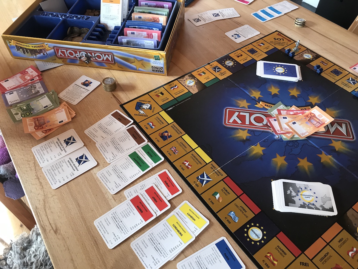 Am Samstag hatte der Sterngucker Spielbesuch, derweil habe ich mit dem Wolf eine Runde Monopoly (die Europaversion*) gespielt. Das dauert ja gern mal ein paar Stündchen.