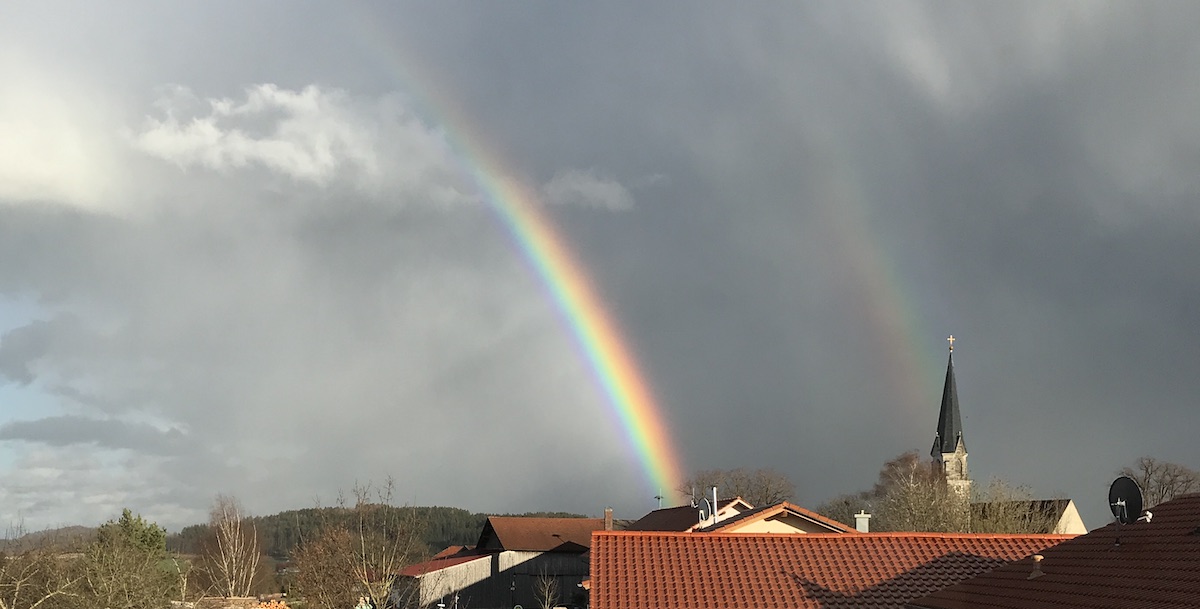 Nach dem Film waren die Kinder noch ein bisschen draussen. Dann kam der Sterngucker ganz aufgeregt rein, um mir zu sagen, dass draussen ein ganz toller Regenbogen zu sehen ist.