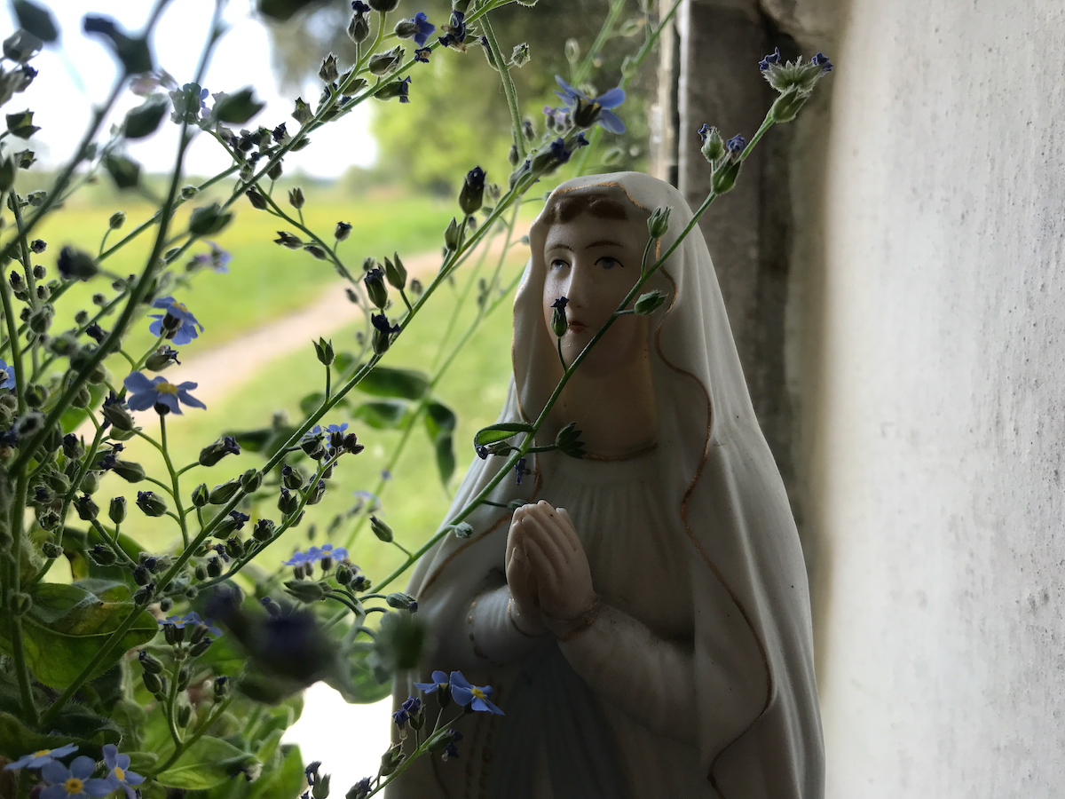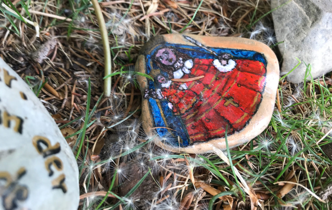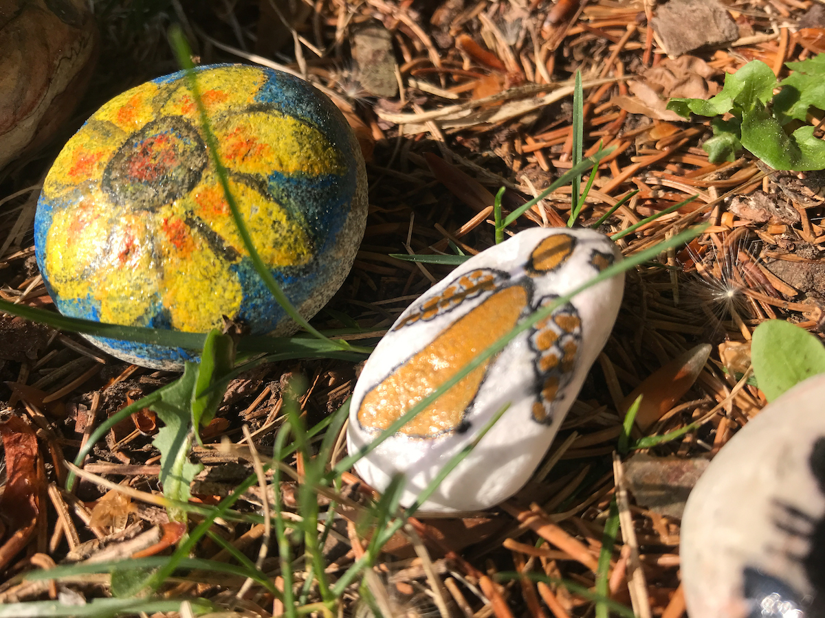 Am späten Nachmittag war ich mit der Tochter und dem Hund eine Runde laufen. Bis zum Frauenbründl, einer kleinen Kapelle mit Quelle hier in der Nähe, und wieder zurück. Ich mag den Ort sehr gern. Die Laufrunde tat gut. Währenddessen habe ich mein Madame Moneypenny Hörbuch weiter gehört, wo es im Kapitel über Aktien und Geldanlagen ging. Beim Frauenbründl lag eine Reihe bemalter Steine. Ich kenne sowas ja mittlerweile aus dem Internet, wo Menschen bemalte Steinreihen legen. Sie aber so in echt liegen zu sehen, berührt das Herz nochmal ganz anders. Und wieder ist es ein Beweis, dass der Mensch gestalten will. Dass es tief in uns drinnen ein Bedürfnis ist, uns auszudrücken, sichtbar zu machen und unsere Umwelt zu gestalten. Kunst ist wichtig. Gerade in Zeiten wie diesen. Kunst schenkt Hoffnung, macht sichtbar und hilft, unserem Innersten Ausdruck zu verleihen. Kunst heilt. (Das ist übrigens auch der Grund, warum ich meine Kurse anbiete. Ich möchte jedeN ermutigen, sich auszudrücken und sein Leben zu gestalten. Nicht nur auf Papier. Sondern auch im Sinne von Selbstbewusstsein, Wertgefühl und Mut.)